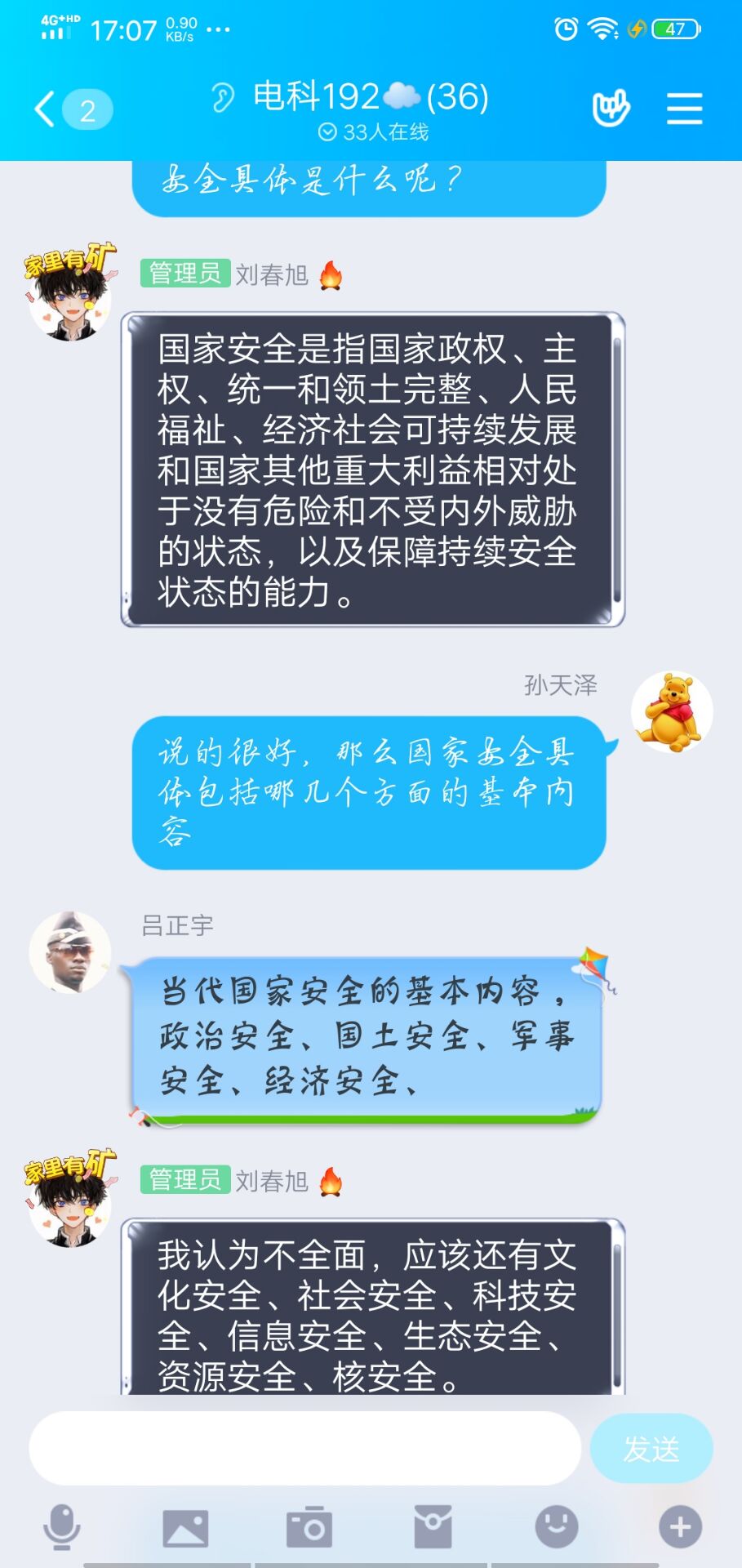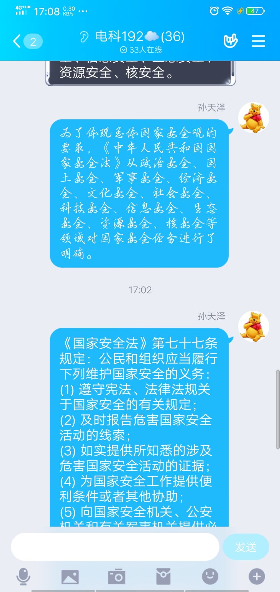 2020年4月15日电科192班开展了以“校园安全,你我同行”为主题的国家安全教育日团活,本次团活由组织委员孙天泽主持,电科192班全体同学参加。