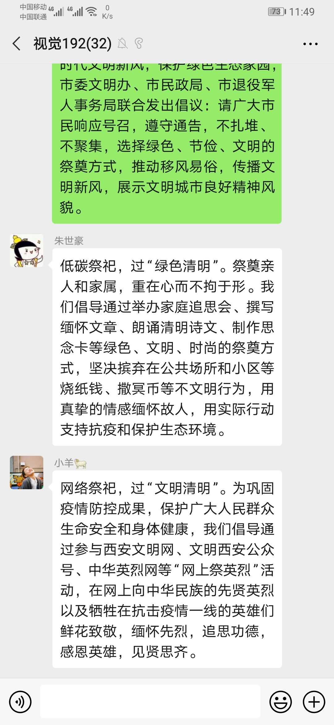 临近中国传统节日清明节,在疫情期间,我们仍然要继承中华民族节日清明节的传统,弘扬爱国主义。2020年4月2日,视觉192班每个人在消息讨论组里分享了自己在家是如何理解传统节日清明节。