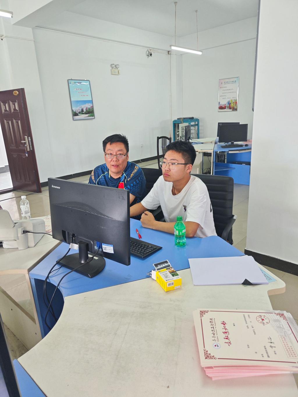 7月24日下午,计算机科学与技术专业23级学生乔台帅到学校录取现场协助生涯导师张庆祥老师录取24级新生。
