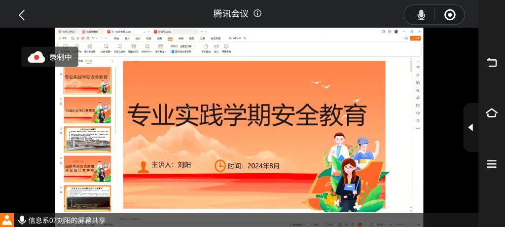 会议开始,刘阳老师说为了提升同学们在专业实践学期中的安全意识,掌握必要的安全防范技能,使同学们深刻认识到安全的重要性,增强自我保护能力,确保专业实践活动的顺利进行。本次班会重点围绕实验室安全、实习实训安全、交通安全和应急处理等方面展开。通过讲解案例、分析风险、提出预防措施等方式,使同学们了解各类安全事故的成因和后果,掌握避免安全事故的方法和技能。同时,同学们也提出了一些在实际操作中遇到的安全问题,刘阳老师对此进行了详细的解答和指导。