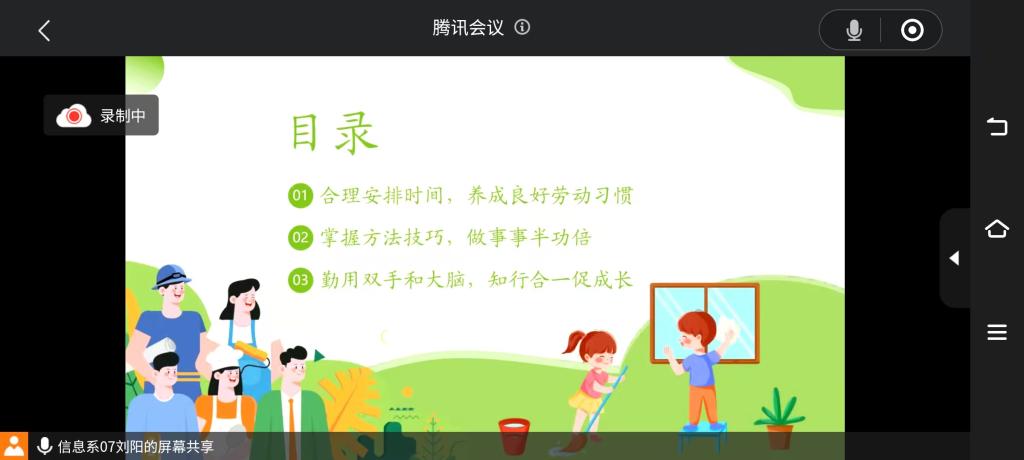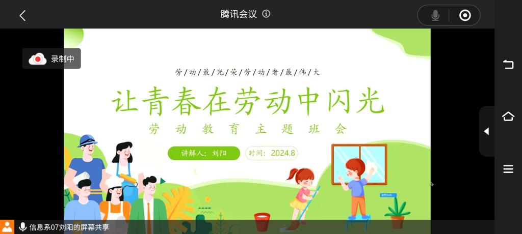 8月20日,视觉232班在线上腾讯会议开展“劳动教育主题”班会,由辅导员刘阳主持,视觉232班共27人参加。目的是为了激发学生对劳动的热情,培养学生尊重劳动、热爱劳动的情感,