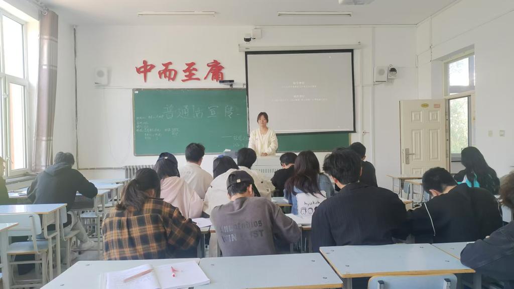 首先,唐艺嘉为同学们介绍普通话,普通话是现代汉民族共同语,推广普通话对于促进社会交流、文化传承等意义深远。随后,由唐艺嘉进行进行普通话的宣讲,让每一位同学都能意识到普通话在学习、生活以及未来职业发展中的重要性。最后,唐艺嘉为提高大家说普通话的积极性与主动性,进行朗读比赛,提高同学们的积极性。
