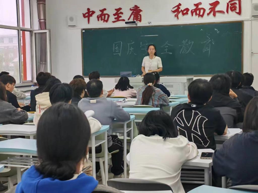 首先,杨佳佳告诉同学们国庆节放假时间和返校时间,并督促每一位孩子牢记国庆放假,安全不放假,放假期间的“安全”系列问题。重点强调“防溺水”“交通安全”“饮食安全”“消防安全”等方面的有关注意事项。随后,让同学们理解了安全无小事,时时讲安全,事事讲安全的含义,让每一位孩子度过一个平安的国庆假期。最后, 杨佳佳告诉同学们新的学期应该好好学习,尽量不挂科,提高学习效率,上课应认真听讲。