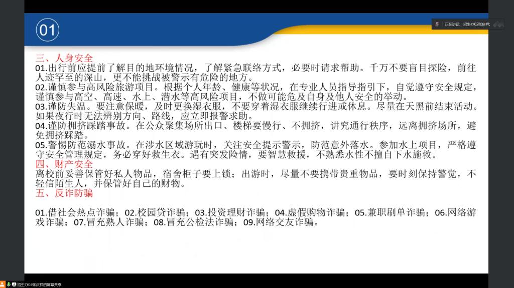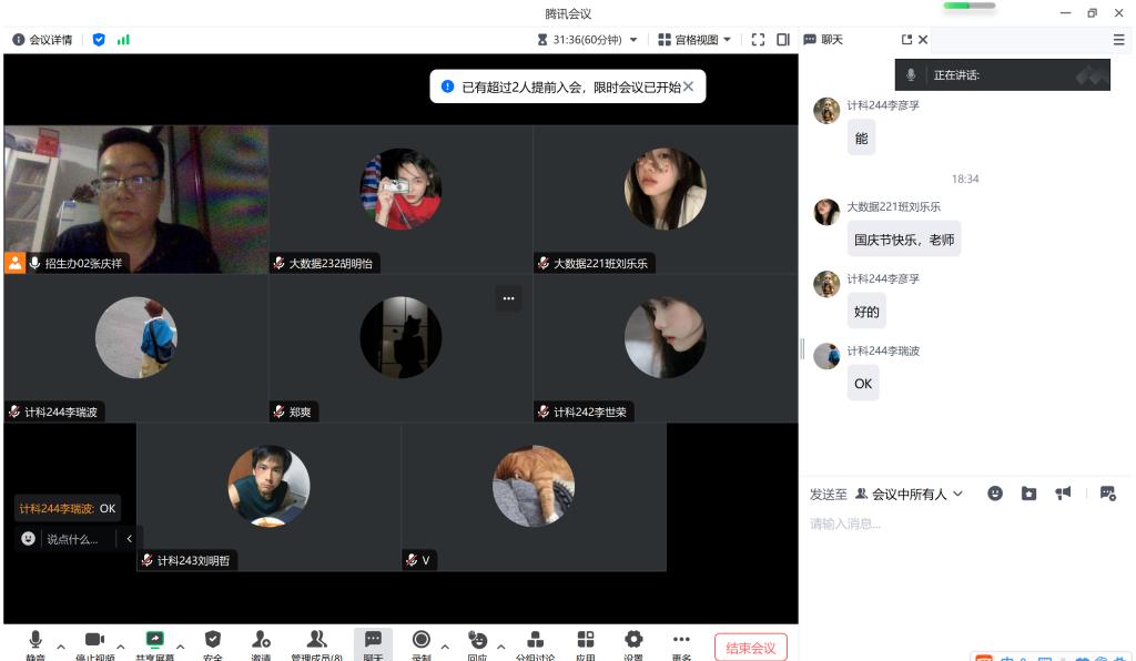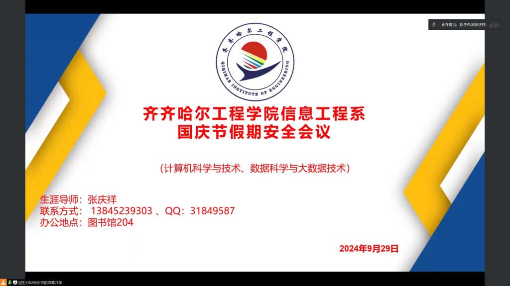 9月29日晚,信息工程系生涯导师张庆祥以腾讯会议的形式召开国庆节假期安全会议。
