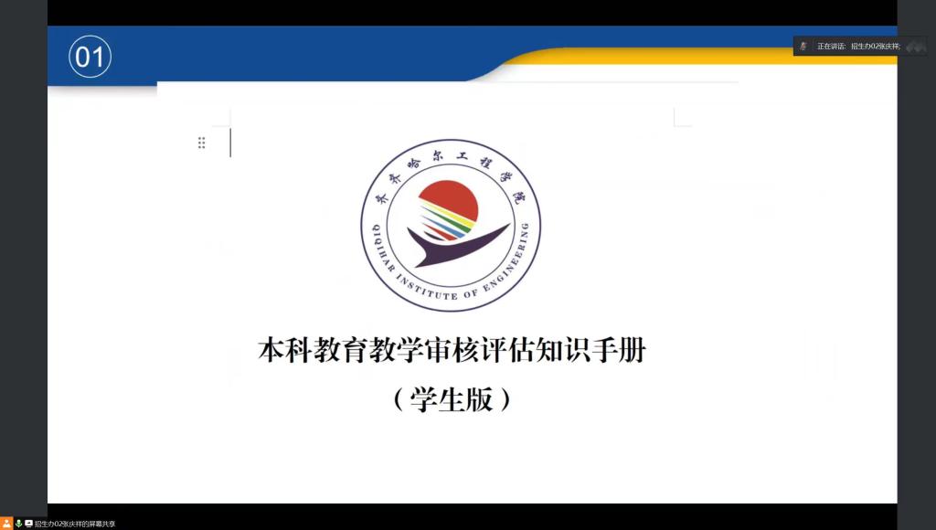 此外,张老师还特别关心留校学生的安全与生活。他强调:“不回家的同学在寝室要特别注意防火安全,遵守宿舍管理规定,禁止使用违禁电器,确保用电安全。同时,也要保护好自己的个人物品,如遇紧急情况,请立即联系宿舍管理员或导师。在强调安全的同时,张老师也没有忘记对考研学子的关怀与鼓励。他讲到:“对于正在紧张备考的研究生入学考试的同学们,假期是你们查漏补缺、提升自我的宝贵时光。请珍惜这段时光,制定合理的学习计划,开始进行最后的冲刺。记住,每一份努力都不会被辜负,相信你们定能取得优异的成绩,实现自己的梦想。” 讲完安全教育,张老师又领学了本科教育教学审核评估知识手册,通过领学,让大家对评估有了进一步的认识,也为十一后预评估专家进校做好了准备。
