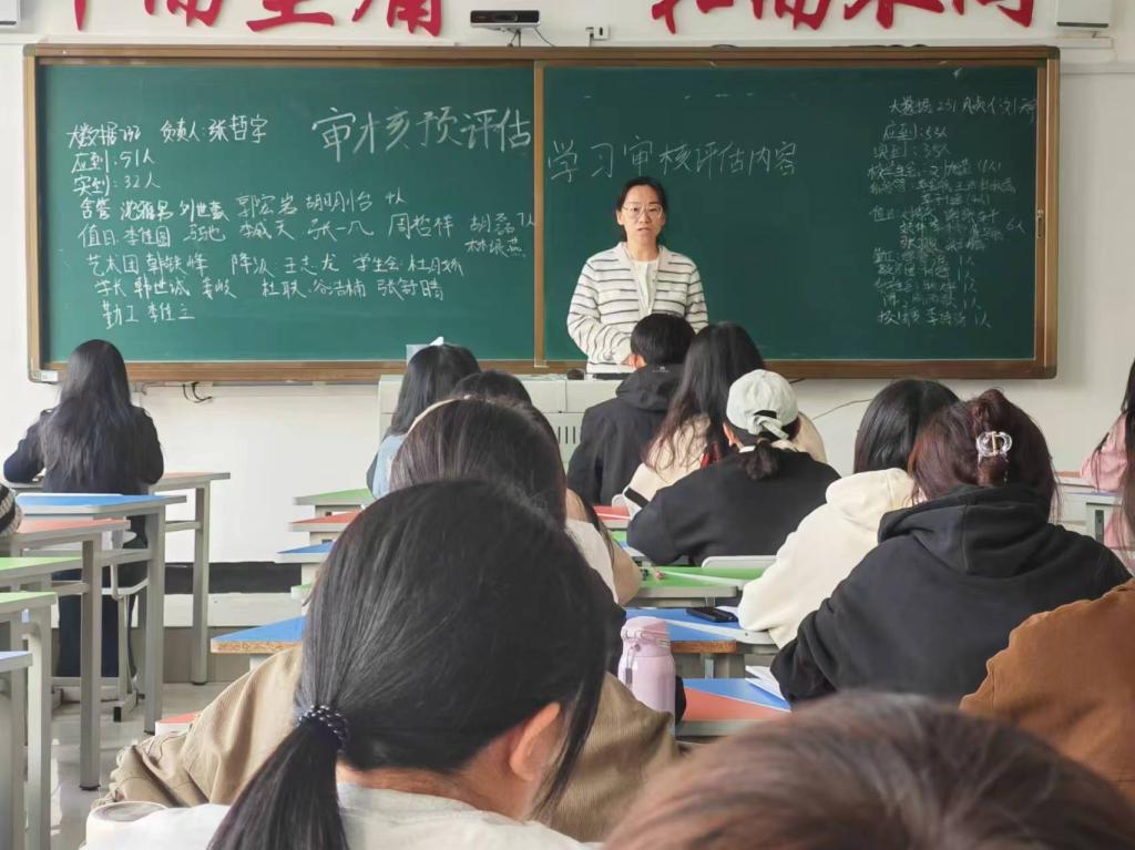 首先,杨佳佳老师强调评估工作的重要性和紧迫性,呼吁同学们以高度的责任感和使命感投入到评估工作中来,鼓励他们为学校的评估工作贡献自己的力量。其次,辅导员杨佳佳主持并宣讲,详细解读本科教育教学审核评估的相关政策、要求和流程,让同学们了解本科教育教学审核评估的基本知识。最后,杨佳佳老师引导同学们认真学习审核评估的相关知识手册,了解评估工作的基本理念和内涵。