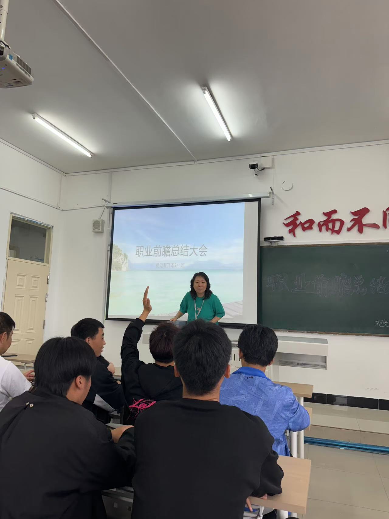 9月29日下午视觉专升本241班在1#1402教室召开视觉传达设计职业前瞻总结大会,由姜岩主持,视觉专升本241班54人参加。