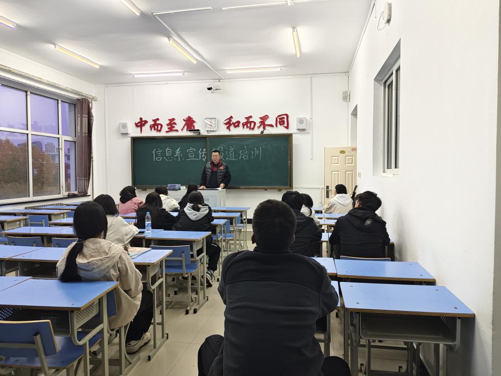 10月16日下午,信息工程系团总支宣传部在一教1403室进行宣传报道培训,本次培训由袁龙剑主持,信息工程系24级宣传委员共13人参加。