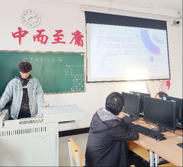 10月16日上午,为增强大学生防骗意识,提高自我防范能力,大数据221班于1#3307开展安全教育防诈骗主题班会,由学委王浩主讲,全班45名同学参加。