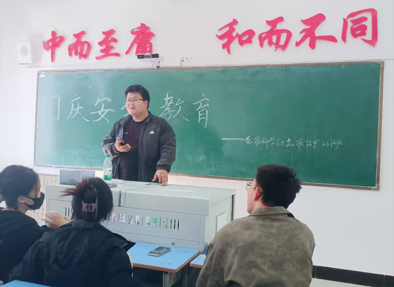 9月26日上午,为提升同学们在国庆节期间的安全防护意识和自我保护能力,强化同学们的风险认知,大数据221班于1#1415教室开展国庆安全教育主题班会,此次班会由班长赵栋栋主持,45人全部参加。