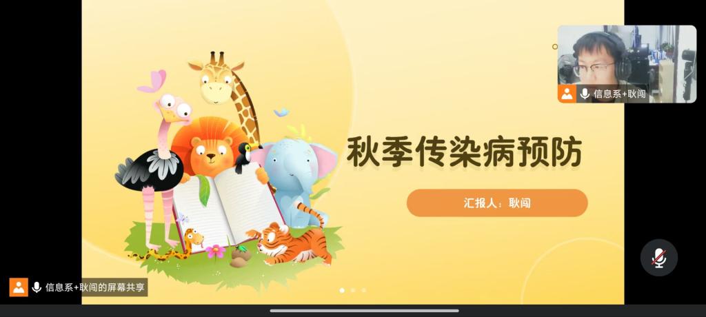 最后,耿闯老师强调每个人都是自己健康的第一责任人,在秋季传染病防治工作中,我们要积极行动起来,从自身做起,从身边的小事做起。