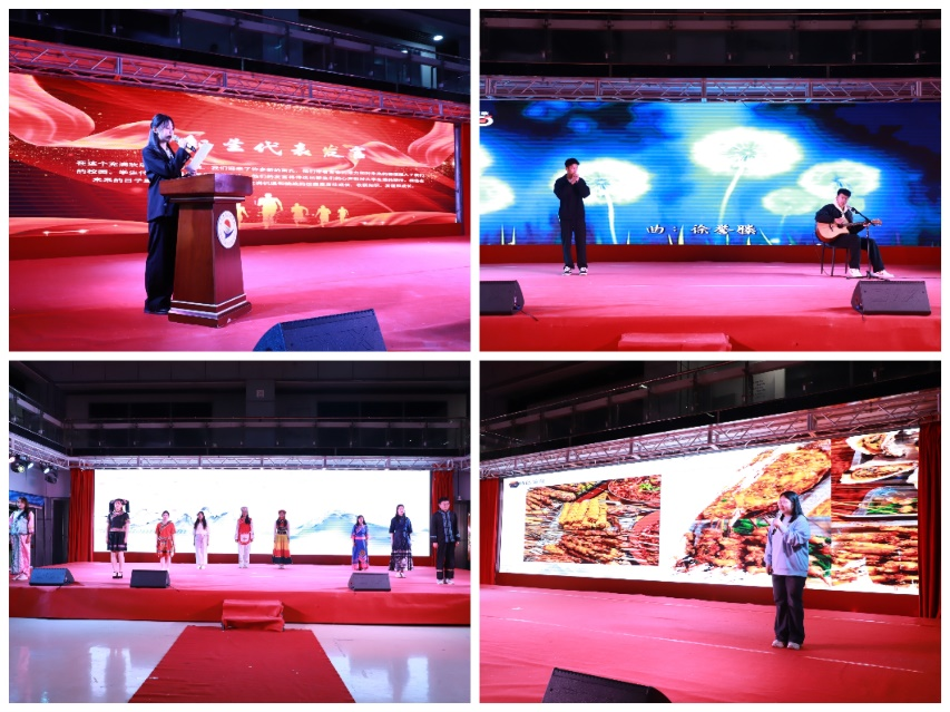 随着晚会的不断进行,不仅有精心编排的民族服饰展示,还有来自全国各地学子的介绍我的家乡美,甚至还有T台走秀的一场视觉盛宴吸引着全场目光。优美琴声动人心弦,好听的歌曲陶醉其中。丰富多彩的节目轮番上演,令人目不暇接。学长代表发言预示着晚会也将进入尾声。聆听学长代表的发言,心中满是感慨。学长的话语真诚而有力,分享的经验与感悟如明灯照亮我们前行的路。感受到学长的关爱与期望,也激励着我们勇敢面对新挑战,在未来的日子里努力拼搏,为自己的梦想而奋斗。