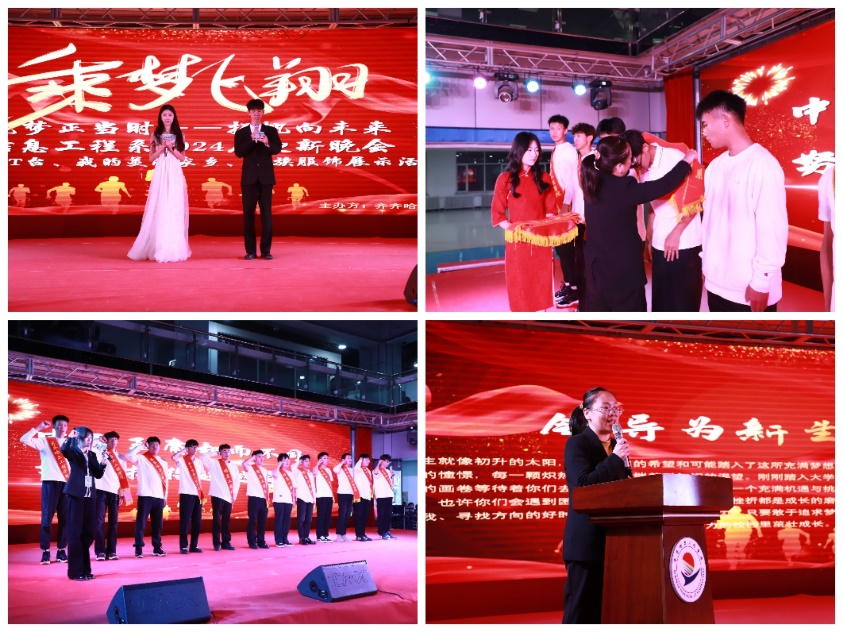 2024年10月10日18:00——19:30,信息系在汽车大楼三楼举办了【筑梦正当时——扬帆向未来。信息工程系2024届迎新晚会暨魅力T台、我的美丽家乡、民族服饰展示活动】。由信息工程系主办,出席的领导有学生工作处负责人王丽萍、信息系党总支书记、系负责人李野、副主任刘春媛、信息系党总支副书记孙晓芳、信息系各专业专业长、辅导员。