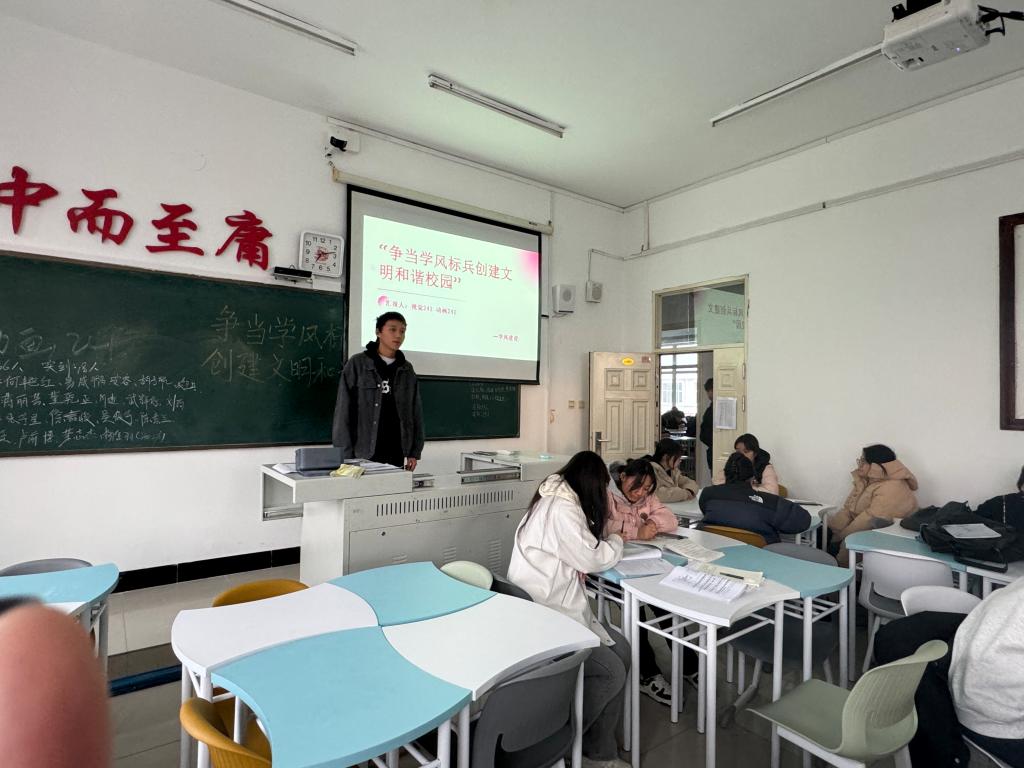 10月29日早自习,一号教学楼1401教室成功召开“争当学风标兵 创建和谐校园”主题班会,由班长韦贵天主持,共46人参加了此次主题班会。