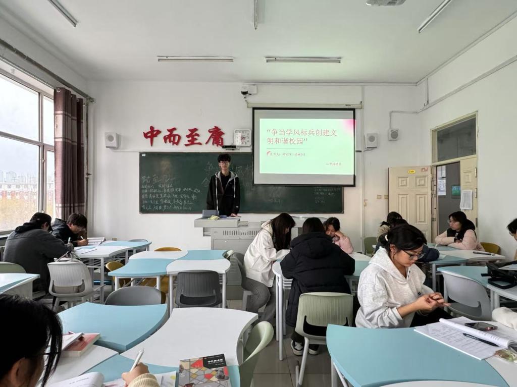 10月29日早上,动画241班在一教A区1401教室开展争当风标兵创建文明和谐校园主题班会。本次主题班会由班长刘奕辰主持。动画241班共36人参加。