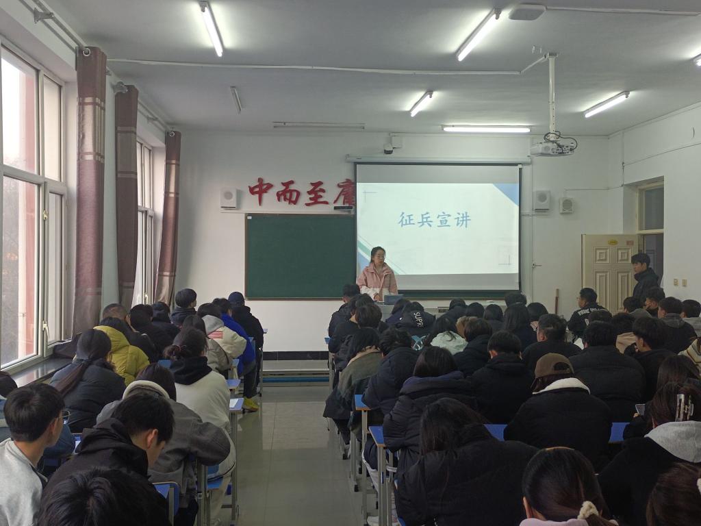 11月7日上午,信息工程系辅导员杨佳佳在一教a区1313召开征兵宣讲主题班会,共50人参加。