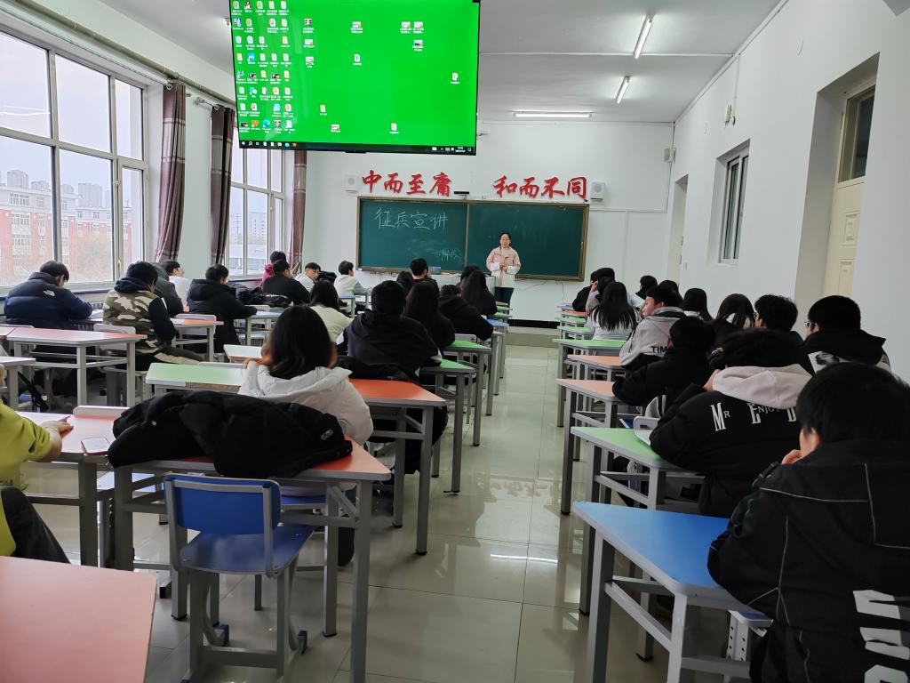 首先辅导员杨佳佳向同学们介绍了征兵的重要意义,让大家明白国防事业与每个人息息相关。接着,详细讲解了征兵的条件,包括年龄、身体、学历等要求,同时对征兵流程做了清晰梳理。还通过播放精彩的军旅视频,展现军人的飒爽英姿和热血生活,极大地激发了同学们的兴趣。