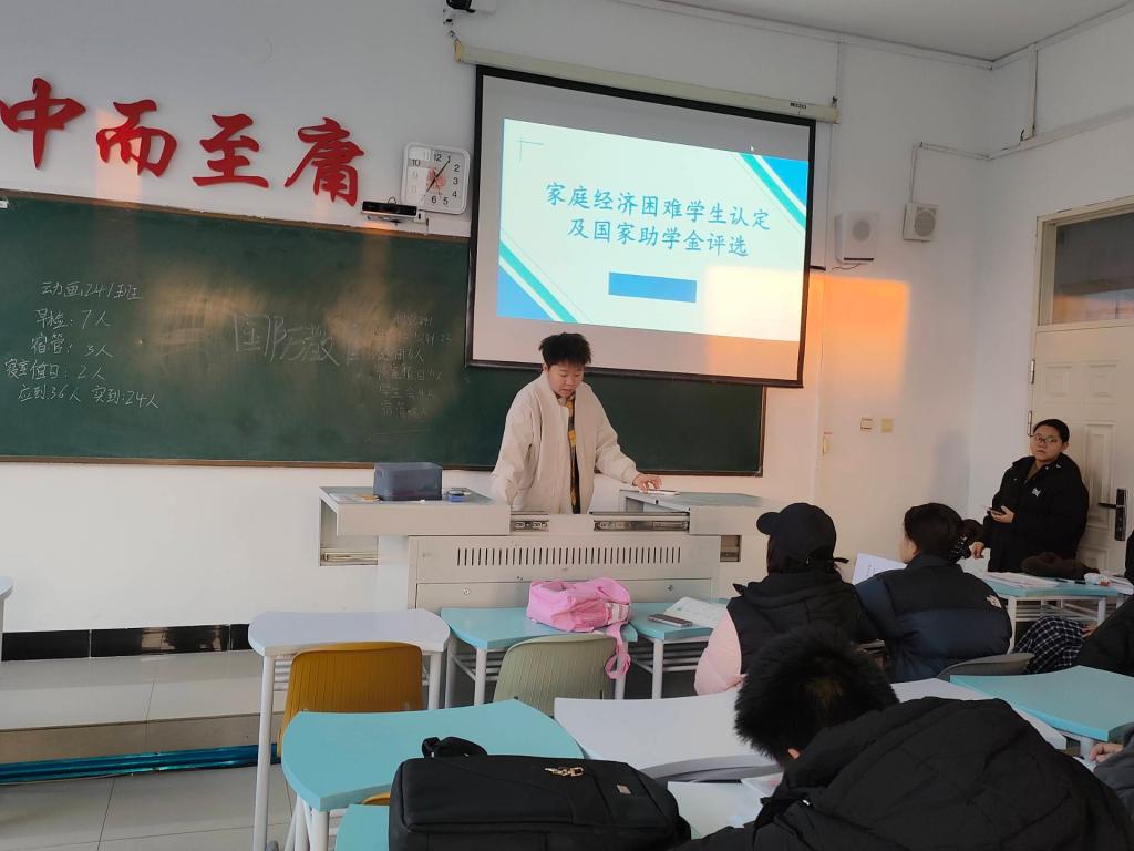 首先张莹老师通过2024级家庭经济困难学生档案建档,2024年秋季学期国家助学金评选两大模块进行讲述。在2024级家庭经济困难学生档案建档分别从认定类型、需要的材料、材料的装订顺序、需要注意的问题做好家庭经济困难认定及国家助学金评选准备工作安排进行。然后2024年秋季学期国家助学金评选中简述了资助标准、政策调整、需要注意的问题、三个方面介绍了助学金有那些,国家的最新政策以及评选的要求,介绍给同学们,并给予相应的帮助指导。