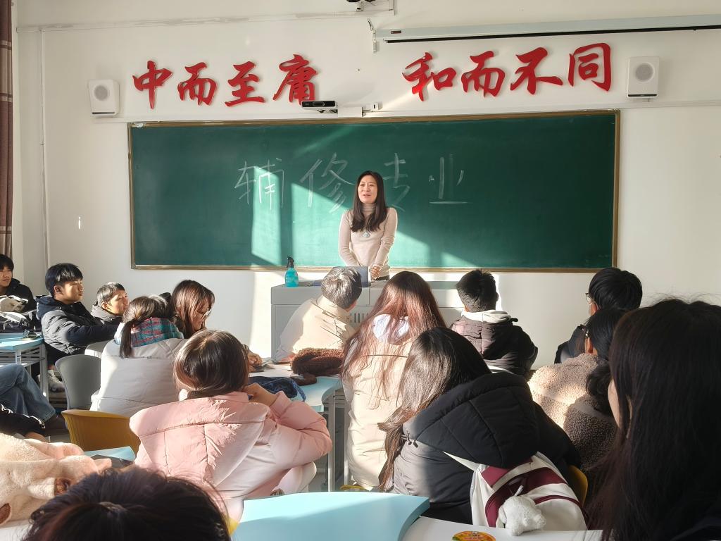 为了更好地培养社会急需的多样化、跨学科和社会适应能力强的高素质复合型人才。首先,张莹老师详细介绍了辅修专业的相关规定,在申请条件方面,明确指出辅修专业需达到一定的学业水平,比如平均学分绩点的最低标准,同学们都全神贯注地聆听。张莹老师指出,辅修专业是指在校普通本科生在保证完成主修专业的同时,根据学校的有关规定,经自愿申请,学校考核同意,再完成跨学科门类的另一专业的学位课程,达到授予条件。随后,张莹老师强调道,辅修专业是拓宽学术与职业道路的利器,可以提高同学们的就业竞争力,拥有更多的职业选择对于课程设置。张莹老师讲解了辅修专业课程的构成和学分分配,包括必修与选修课程的不同要求。最后,张莹老师为同学们解答相关的问题,提供有利的建议,强调实践教学环节的比重和考核要点,让同学们知晓实践能力在辅修专业中的重要性。