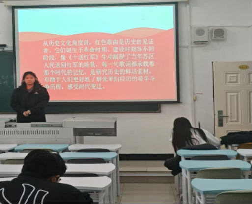 11月15日下午,计科专升本241班在一教1413室教室举行了一场以“十送红军”为主题的红色歌曲活动。本次活动由团支书徐嘉悦组织开展。
