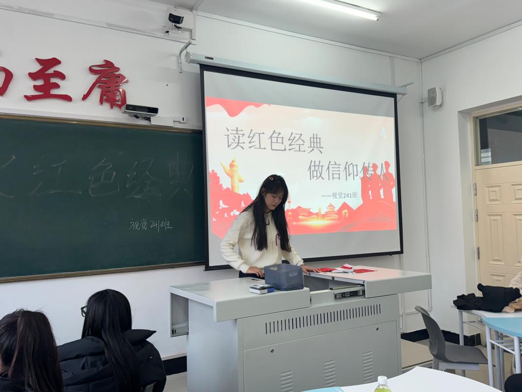 11月19日上午,视觉241班在一号教学楼1401教室开展“读红色经典,做信仰传人”主题活动。此次活动由团支书侯骄阳主持开展,共46人参加活动。