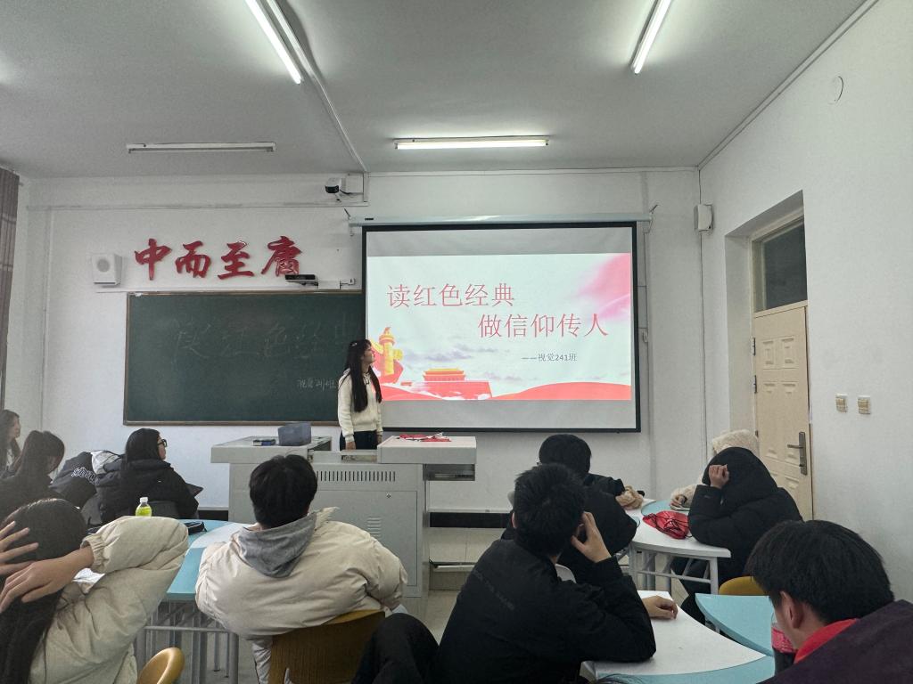 11月21日下午,视觉241班在一号教学楼1401教室开展“读红色经典,做信仰传人”主题活动。此次活动由团支书侯骄阳主持开展,共46人参加活动。