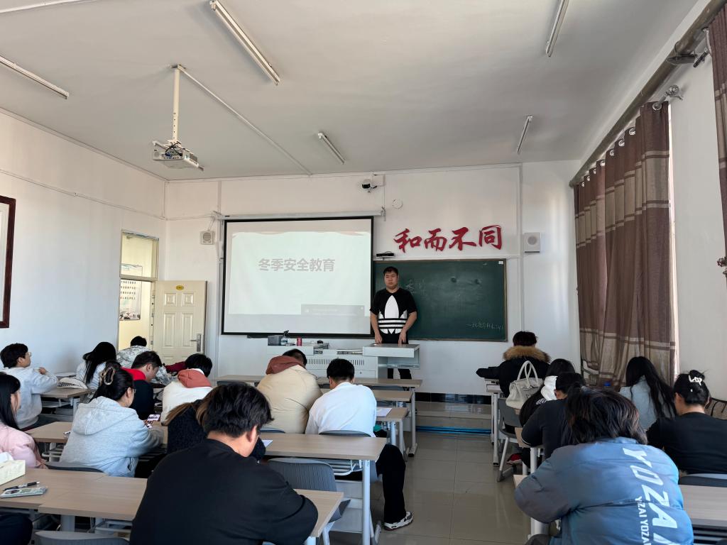 此次会议为提高同学们的冬季安全意识,预防各类安全事故的发生。姜育恒提醒同学们在冬季出行时要注意道路结冰情况,遵守交通规则,步行时要走人行道,过马路要走斑马线,骑自行车或电动车要佩戴头盔,遵守交通信号。强调冬季用火用电安全,不私拉乱接电线,不使用大功率电器。提醒同学们在使用取暖设备时要远离易燃物,防止火灾发生。讲解火灾逃生知识,如用湿毛巾捂住口鼻、低姿逃生等。提醒同学们及时添加衣物,注意防寒保暖,预防感冒等疾病。讲解冬季运动注意事项,避免在寒冷天气中过度运动导致受伤。 告知同学们在雪天、冰面上行走要小心谨慎,避免滑倒摔伤。学校内的楼梯、走廊等地方要注意防滑,着重强调校园湖面,行走行为是禁止的,以免同学掉进湖里,身体受到伤害。