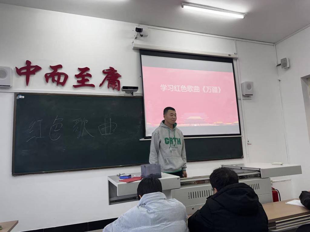 会议的开始,李占斌介绍《万疆》的创作背景与深刻内涵,其优美旋律与饱含深情的歌词展现出对祖国山河的热爱和对盛世中华的赞颂。接着,播放歌曲音频与视频,同学们认真聆听感受,跟唱体会节奏与情感表达。在分组练习环节,团员青年们积极投入,相互交流纠正发音与演唱技巧。随后的展示环节,各小组歌声嘹亮,以饱满热情演绎,唱出对祖国的拳拳赤子心。本次班会聚焦红色歌曲《万疆》的学习演唱,旨在以歌颂党爱国,庆祝中华人民共和国成立 75 周年。