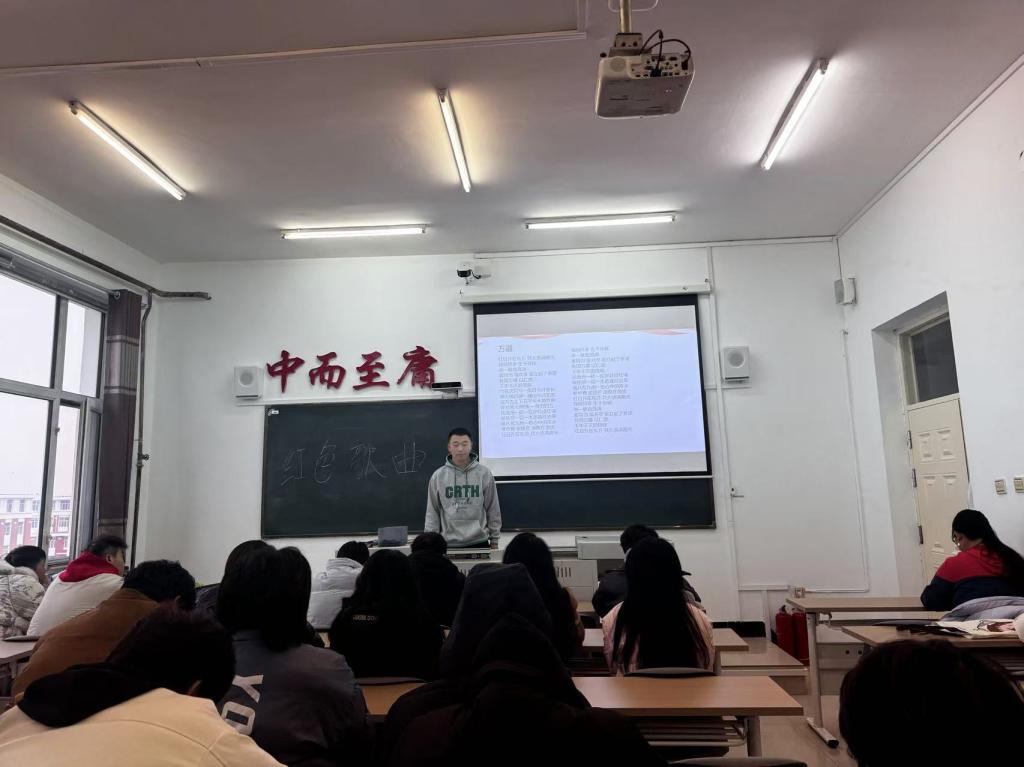 11月7日上午视觉专升本241班在1#1402教室开展视觉传达设计学唱一首红色歌曲班会,由团支书李占斌主持,视觉专升本241班29人参加。