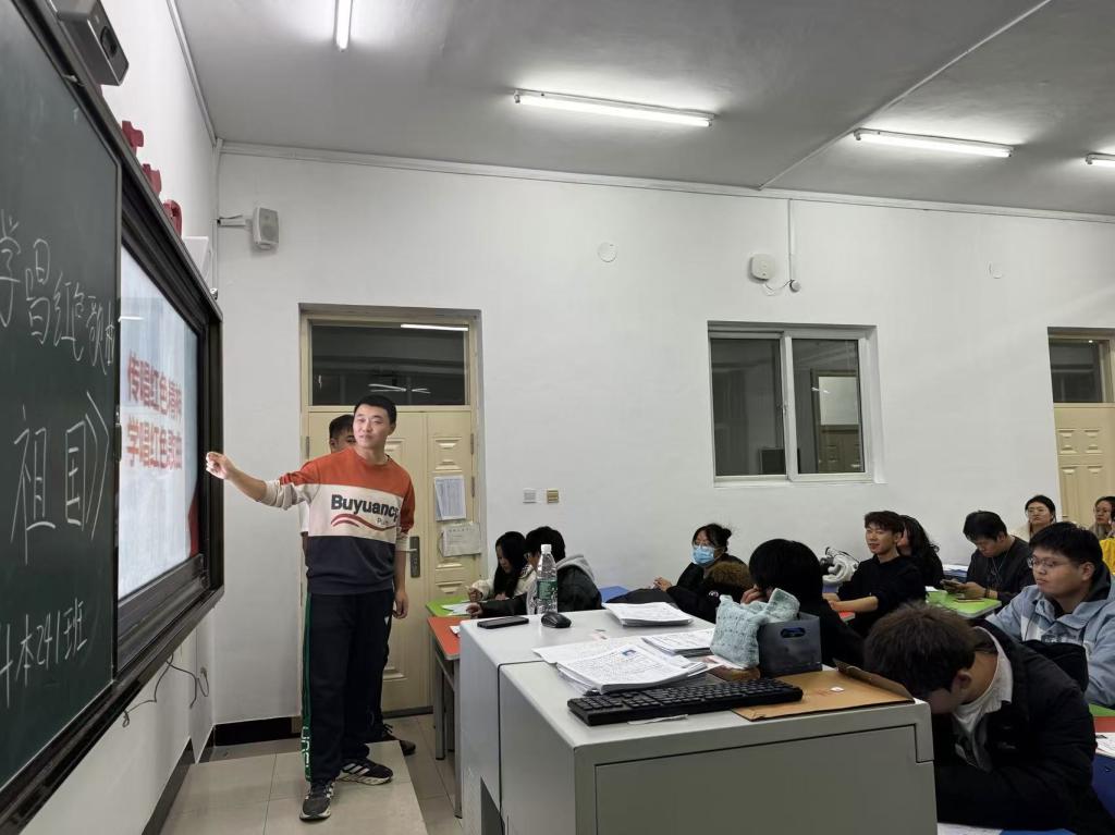 会议的开始,李占斌深入阐释歌曲所蕴含的深厚爱国情怀与对祖国紧密相连的情感纽带,让同学们对其意义有深刻理解。随后播放专业演唱视频,同学们全神贯注聆听,感受旋律的优美与情感的真挚。在教唱环节,借助钢琴辅助,逐句教唱,同学们认真模仿,反复练习高低音转换与节奏把握。大家分组进行合唱排练,彼此协作,不断打磨演唱细节。最终,全体团员青年齐声高唱,歌声激昂回荡。