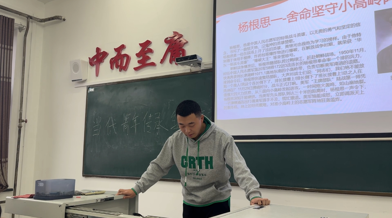 会议的开始,李占斌讲述分享了杨根思烈士在小高岭阵地的英勇事迹。杨根思面对敌人,毫不畏惧,舍命坚守阵地,用生命诠释了忠诚与担当。同学们深受触动,纷纷表示要从杨根思烈士身上汲取精神力量。在学习上,要勤奋刻苦,勇攀高峰;在工作中,要敢于担当,勇于创新;在生活中,要积极向上,乐观坚韧。