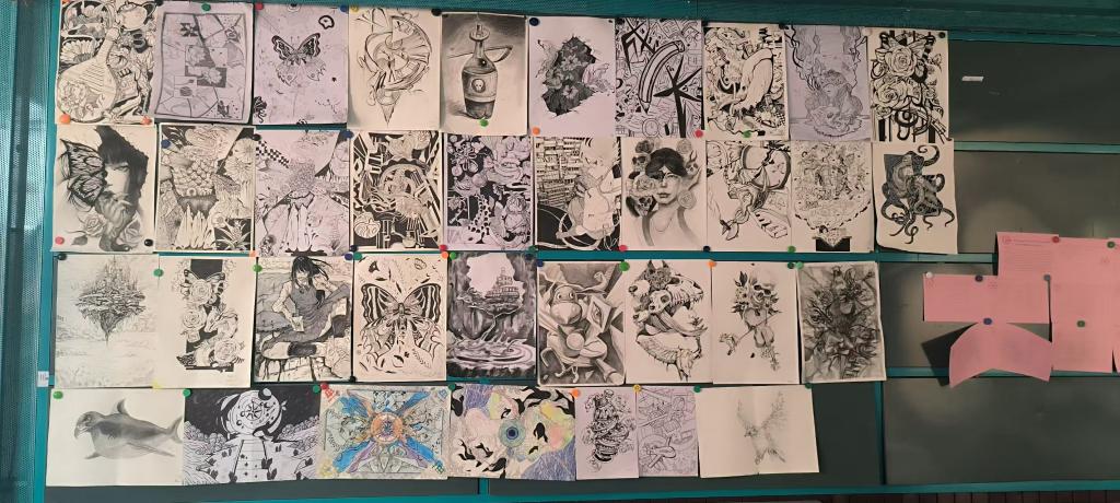 11月29日,视觉传达设计专业在一教A区4层展示墙举办创意素描绘画作品展,本次展览作品是任杰老师指导的视觉专业24级学生优秀作品。