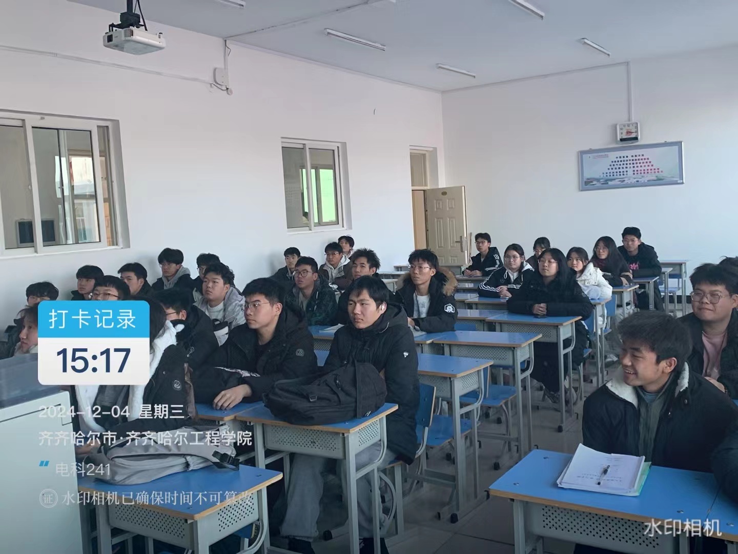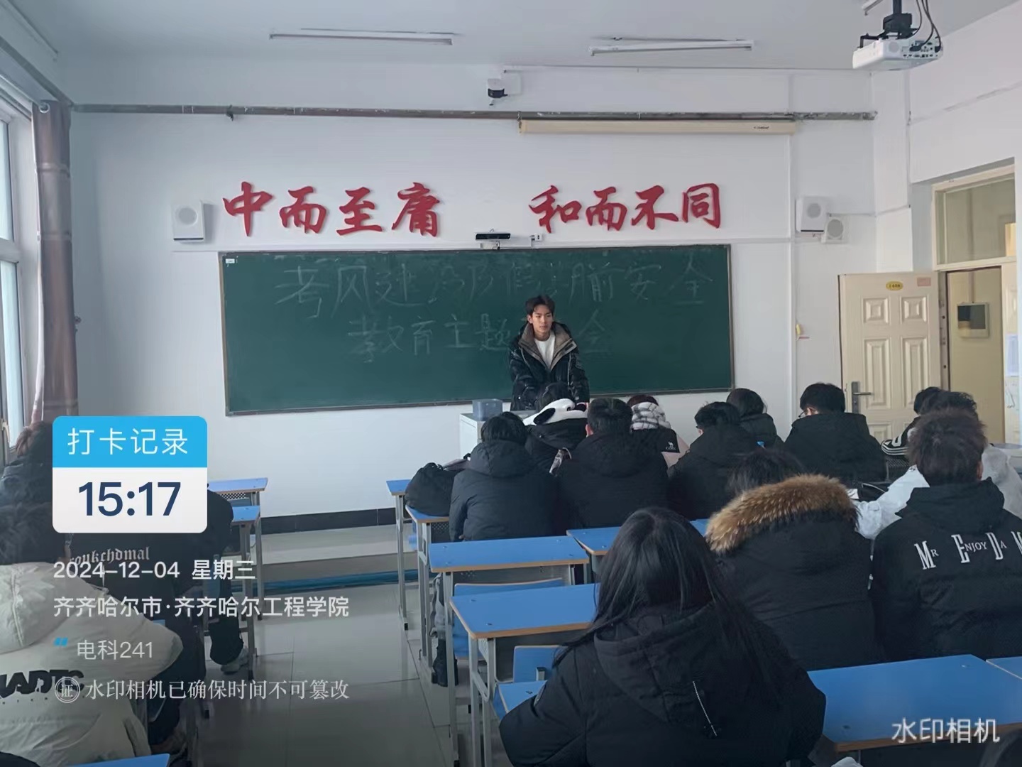 12月4日下午,电科241班在一教A区1406教室召开“考风建设及假期前安全教育”主题班会。本次会议由班长刘海鸽主持。电科241班共55人参加。