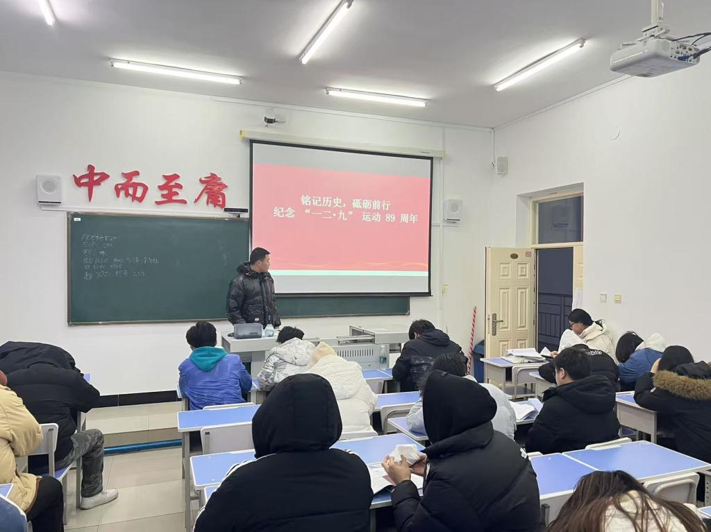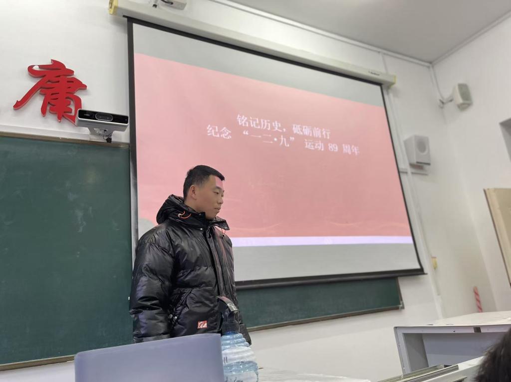 活动开始,李占滨团支书详细介绍了“一二·九”运动的背景与过程。在 1935 年 12 月 9 日,北平学生们为反对华北自治,反抗日本帝国主义,举行了大规模示威游行,他们高呼“停止内战,一致对外”等口号,展现出强烈的爱国情怀与民族责任感。同学们在聆听讲解后,积极发言讨论。有的同学表示,先辈们在国家危亡之际挺身而出,这种精神令人动容,如今我们身处和平年代,更应珍惜时光,努力学习专业知识,提升自我。