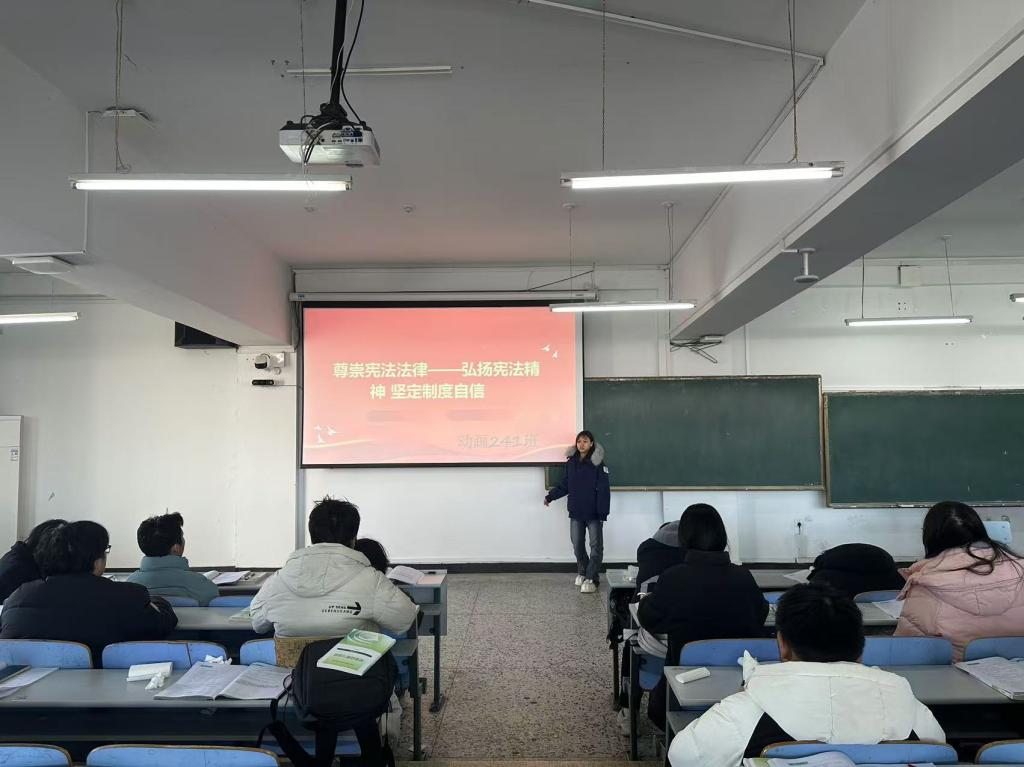 12月5日上午,动画241班在图书馆201教室开展尊崇宪法法律——弘扬宪法精神,坚定制度自信主题活动。本次活动由团支书李远娜主持,共有36名同学参与此次活动