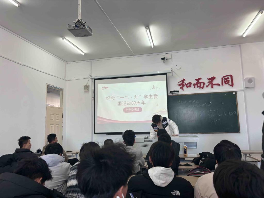 12月3日上午,计科241班于1#1402开展“纪念 一二·九 学生爱国”主题活动,此次会议由组织委员刁卓主持,计科241班全员参加。
