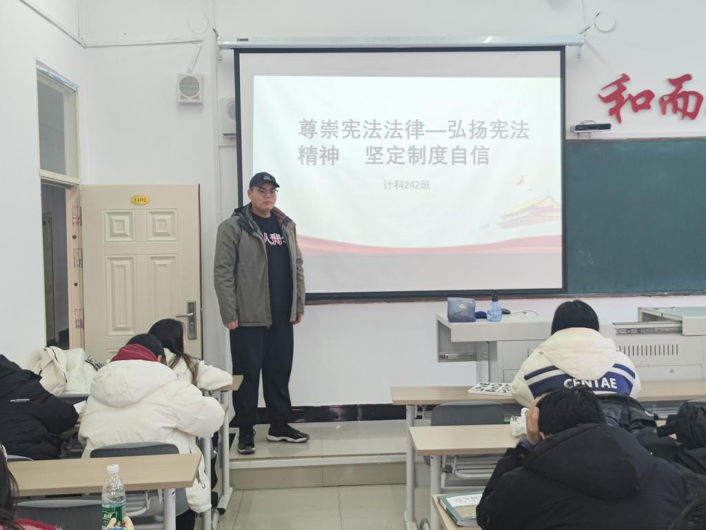 12月5日上午,计科242班于一号教学区1402教室开展“弘扬宪法精神 坚定制度自信”主题活动,此次活动由团支书王梓吉主持,共21人参加。