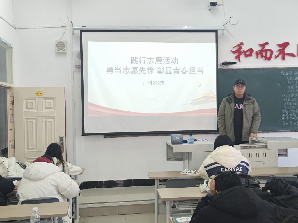 12月5号上午,计科242班于一号教学区1402教室开展“勇当志愿先锋 彰显青春担当”主题活动,此次活动由团支书王梓吉主持,共21人参加。