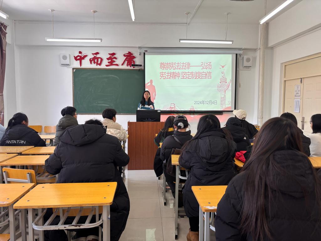 12月5日上午,信息工程系电商241班在二教1202教室开展“尊崇宪法法律 ——弘扬宪法精神 坚定制度自信”主题活动,本次活动由团支书王依铭主持,电商241共32人参加