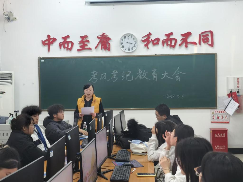 首先,高敏老师强调了考风考纪的重要性,明确指出良好的考风考纪是保证考试公平公正、衡量教学质量和学生学习成果的关键。然后,高敏老师通过列举一些违反考风考纪的案例,向同学们详细说明了考试作弊带来的严重后果,不仅会影响学业成绩,更会损害个人的声誉和诚信度。最后,为了进一步强化同学们的诚信意识,班会还组织大家签署了诚信考试承诺书。同学们郑重地签下自己的名字,承诺在考试中严格遵守考风考纪,自觉维护考试的公正性和严肃性。