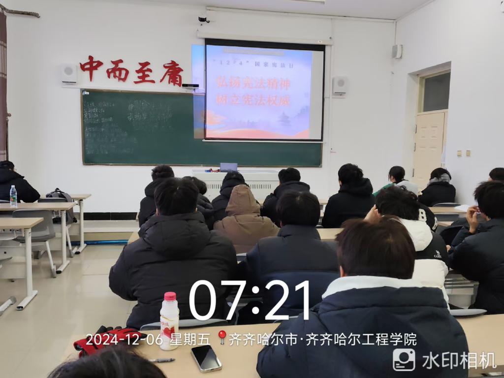 12月6日下午,电科241班在一教A区1406教室开展“弘扬宪法精神 坚定制度自信”活动。本次活动由团支书王崇主持。电科241班共15人参加。