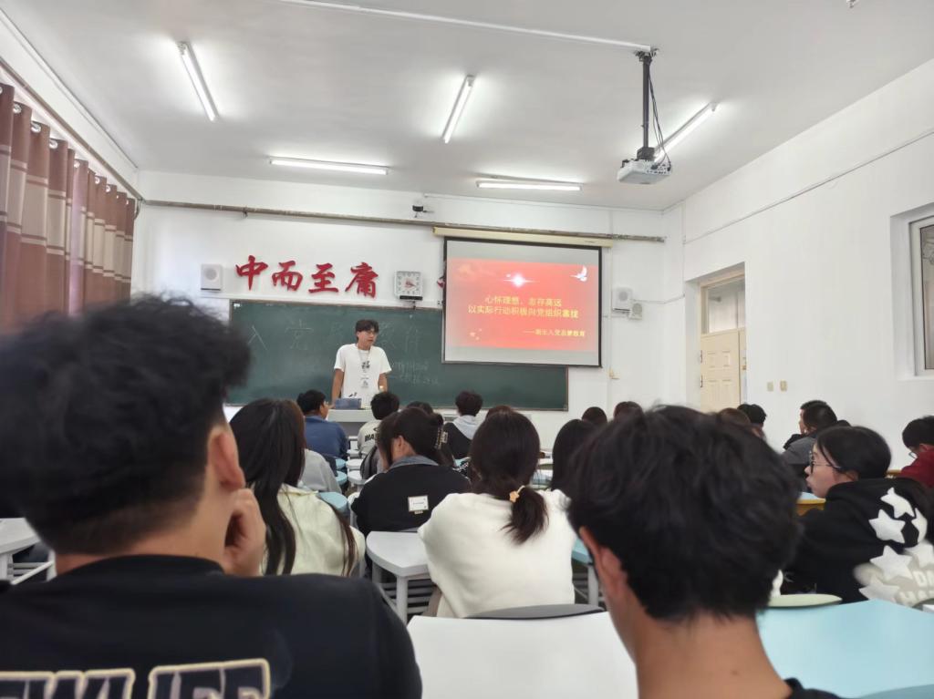 9月20日中午,信息工程系2024级数据科学与大数据专业在一号教学区1402教室举办新生入党启蒙教育主题活动,由齐齐哈尔工程学院大数据242班党员学姐刘贝贝和大数据241班党员学长付斌斌共同作为该活动的讲解员,大数据241班和大数据242班共79人参加。