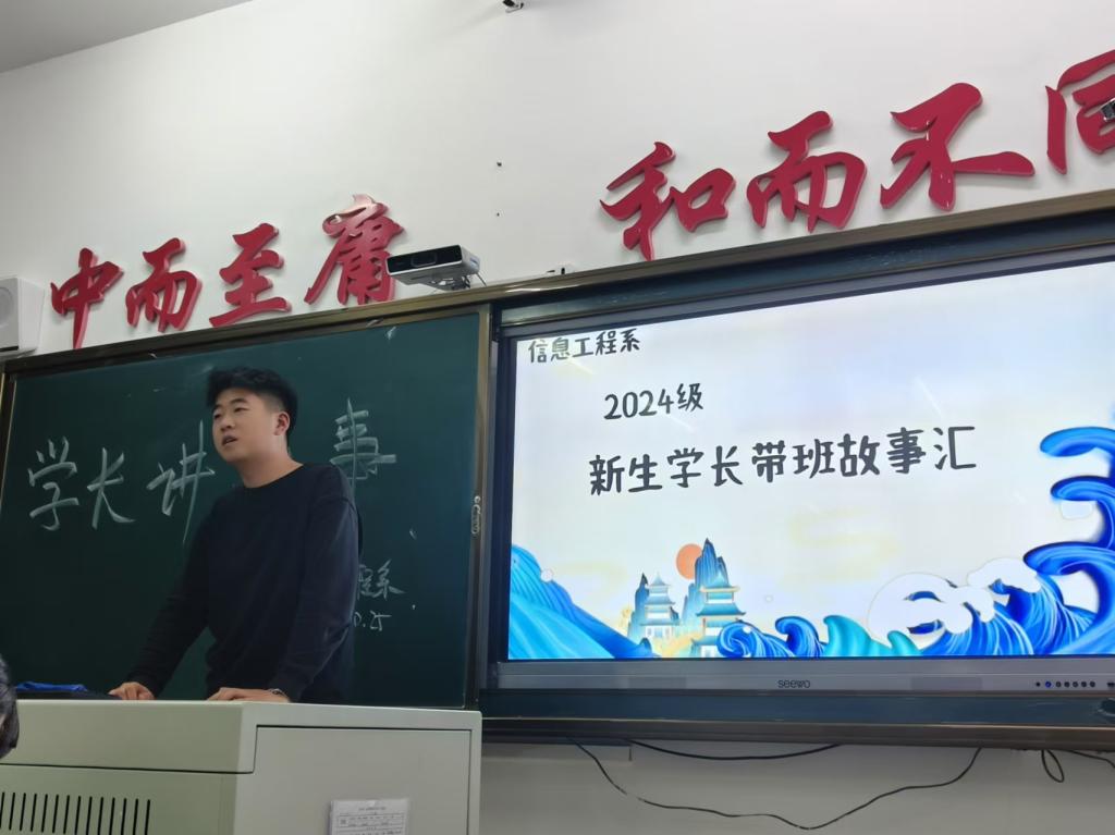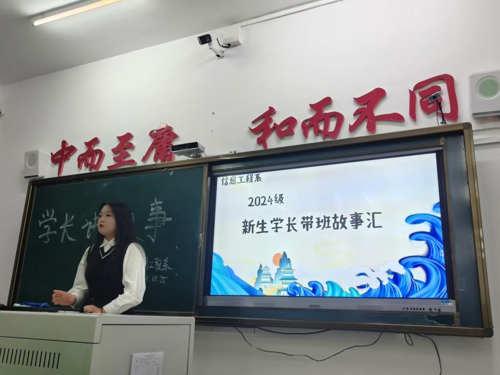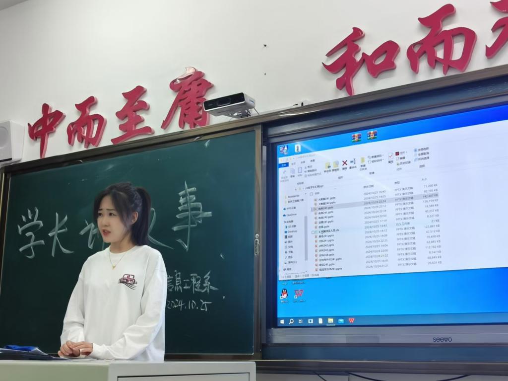 10月25日下午,信息工程系在一号教学1405教室召开以“新生学长带班故事分享”为主题的会议,本次会议由信息工程系党总支部书记孙晓芳主持,新生班级辅导员刘铭炜,张莹,黄金石等老师参与,共有70余名同学参与本次会议。