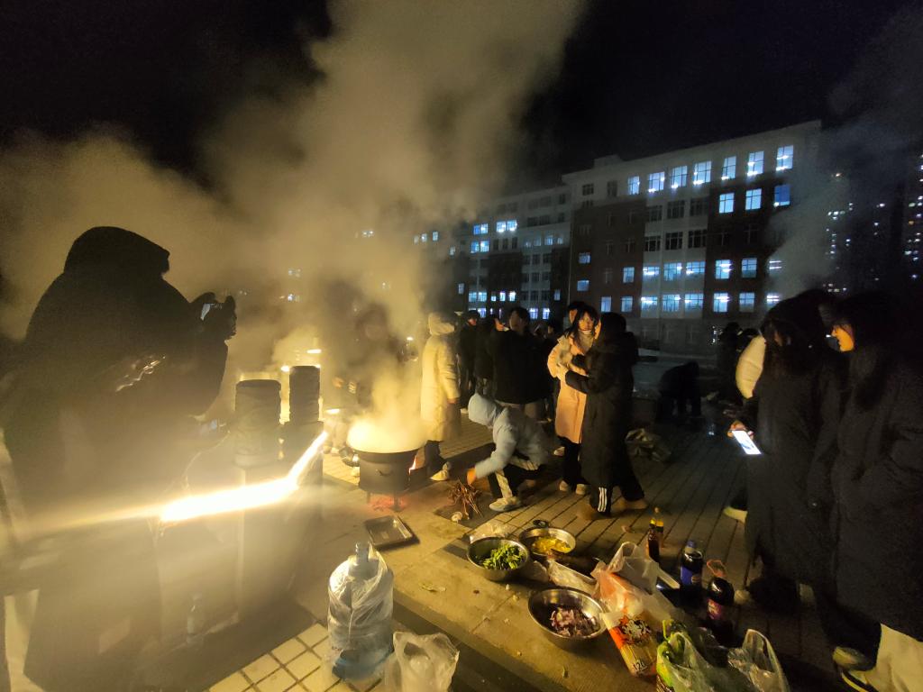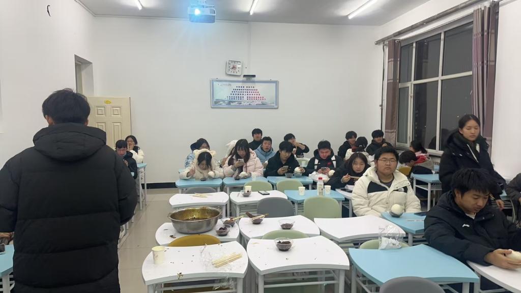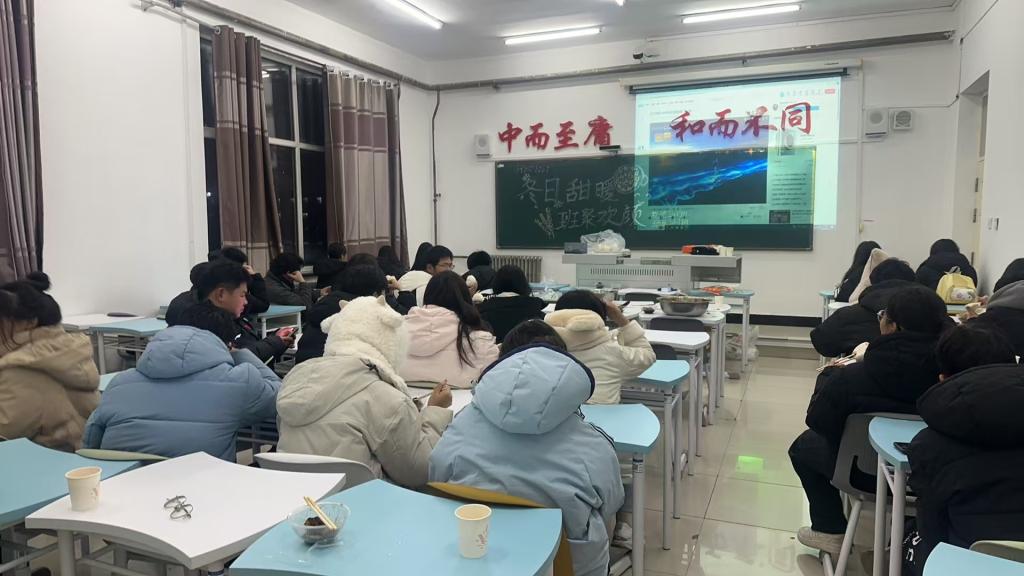 冬日甜暖,班聚欢颜主题活动增加同学们班级集体感。首先,协助班集体进行班聚活动的主题设定、场地布置及物资准备。围绕“冬日甜暖,班聚欢颜”主题,精心挑选装饰物品,营造温馨氛围。其次,管理活动物资,确保食品与饮料供应充足,并及时处理突发状况。最后,活动中同学们积极参与游戏,分享美食,铁锅炖大鹅分享集体,欢声笑语不断。