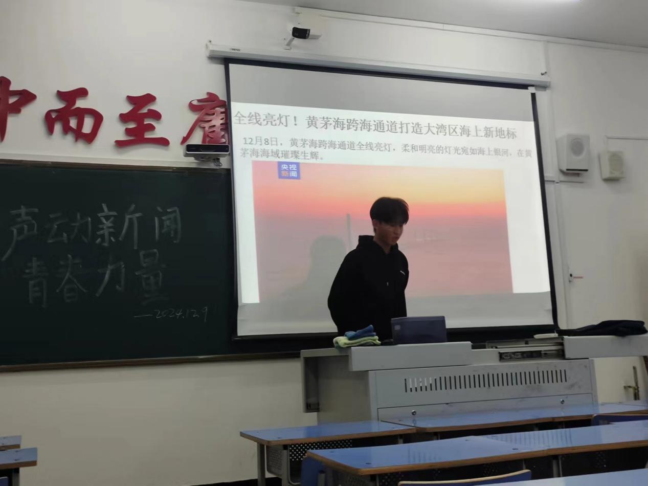 2024年12月9日晚自习,信息工程系学习部举行了“声动新闻,青春力量”新闻播报比赛活动。吸引了众多热爱新闻与播音的才俊踊跃参与,现场气氛热烈非凡,展现出了青春的蓬勃朝气与无限活力。