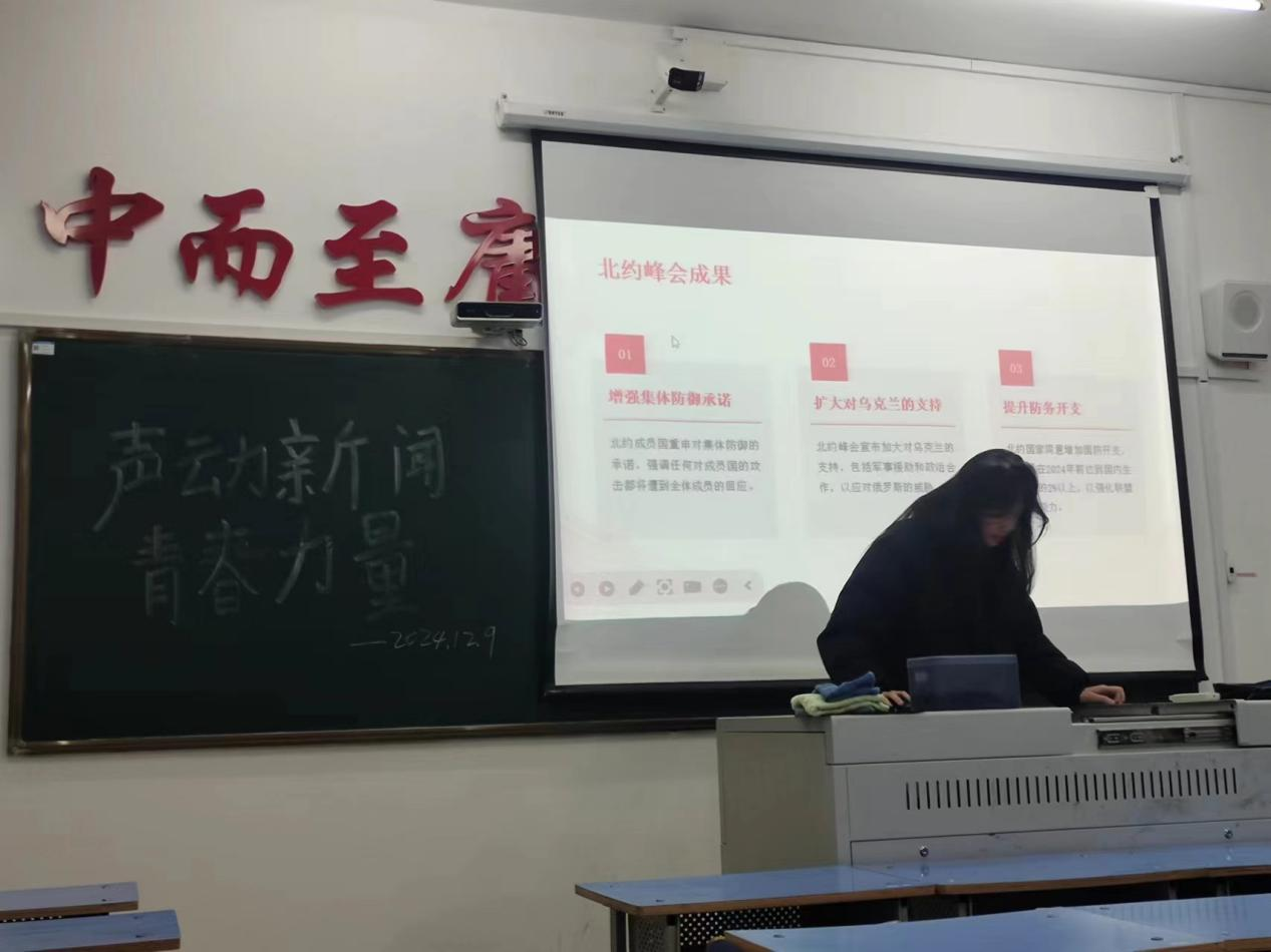例如视觉241班代表人对国际热点事件进行了新闻播报,增强了公众的全球视野,有助于信息的快速传播。国际热点新闻播报让观众了解到世界不同角落发生的重大事件,如乌克兰危机进展、北约峰会成果等,使人们突破地域限制,更好地理解全球的政治、经济、文化格局。