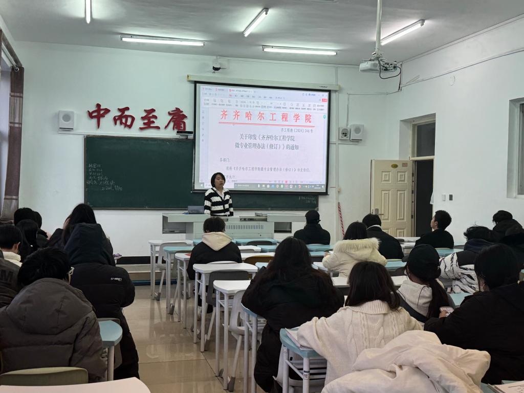 随着高等教育的快速发展和教育改革的不断深化,微专业作为一种新兴的教学模式,以其灵活多样、针对性强的特点,逐渐成为高等教育体系中的重要组成部分。辅导员刘阳老师对其进行了详细的讲解,同学们也提出了自己的提问。本次修订旨在进一步规范微专业的设置与管理,明确各方职责,优化资源配置,确保微专业的健康发展与持续改进。