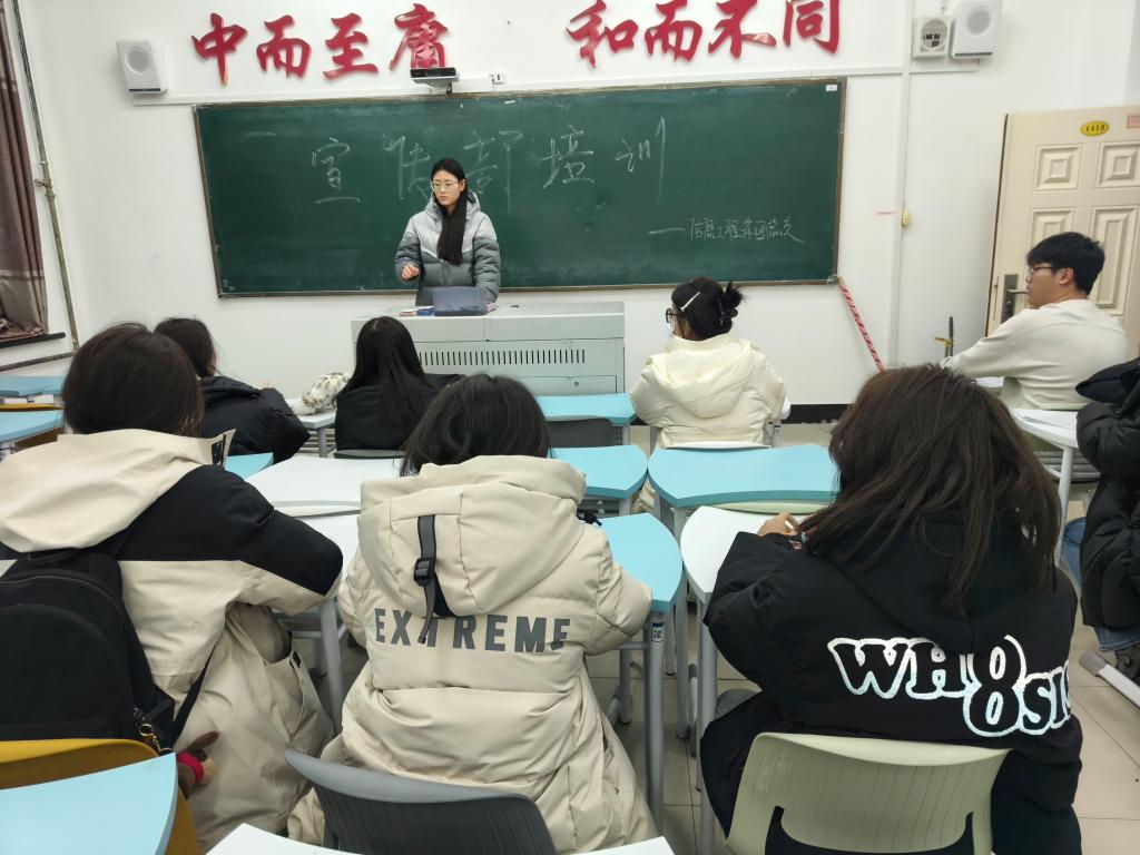 首先,宣传部部长焦滢橘强调此次活动旨在提升部门成员在宣传工作方面的专业素养与技能,增强团队协作能力,以更好地服务于学校的各项宣传任务。随后,详细讲解报道的结构,包括标题、导语、主体、结尾等部分的撰写要点。通过分析多篇优秀报道,让成员们直观地了解如何突出重点、运用简洁明了的语言表达核心。在培训过程中,同学们表现出了极高的热情与积极性。认真聆听讲解,做好笔记,并积极参与互动环节,提出自己在日常宣传工作中遇到的问题与困惑,与宣传部部长焦滢橘和其他成员进行深入的讨论与交流。最后,宣传部部长焦滢橘对此次活动做出总结,促进了成员之间的团队协作与沟通。成员们相互配合、相互学习,共同完成各项任务,增强了团队凝聚力。本次宣传部培训为部门成员提供了一次宝贵的学习机会,在提升专业技能与团队协作能力方面取得了良好的效果。在今后的工作中,将继续总结经验教训,不断完善培训机制与内容,为打造一支高素质、专业化的宣传队伍而努力。