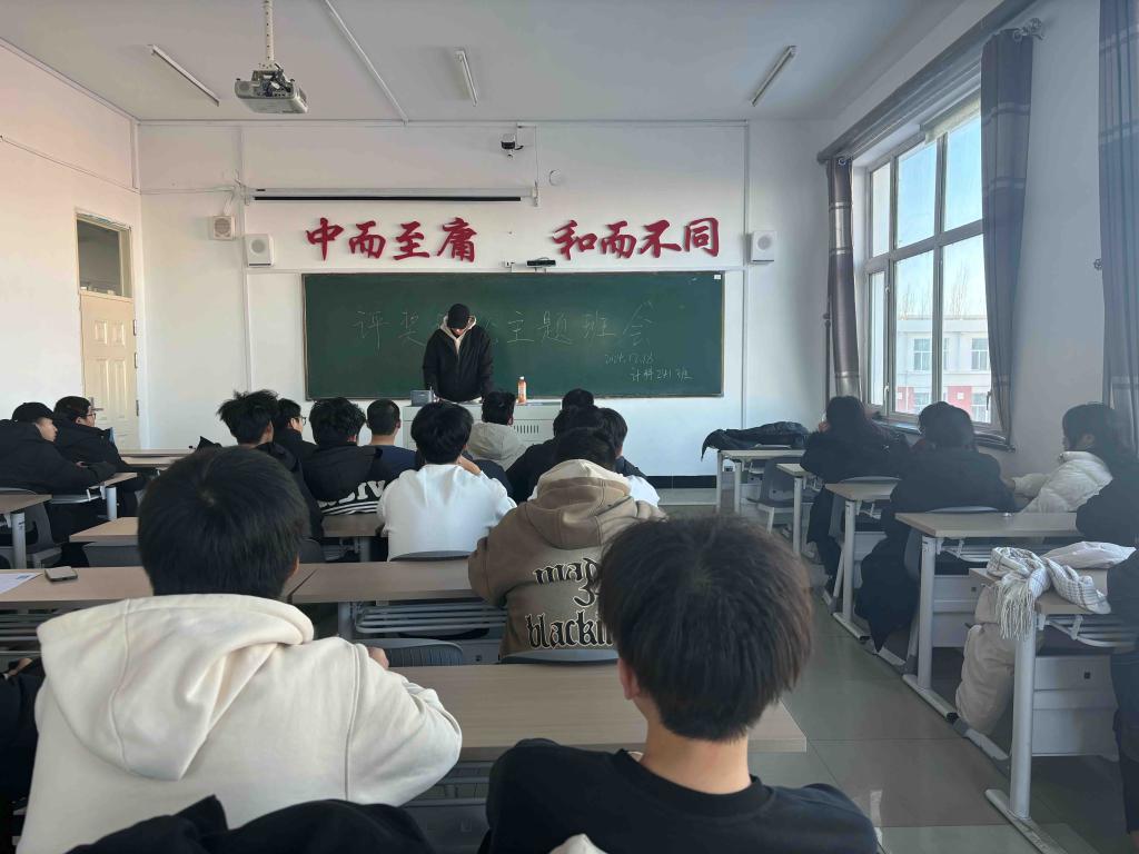 12月18日下午,计科241班于一号教学楼1402召开“评奖评优”主题班会,此次班会由班长马檍军主持,计科241班三十余人参加。