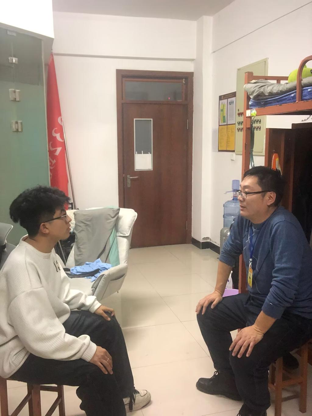 此次走访,张老师先后来到了位于11公寓的612、102、101寝室,逐一探望了住在这里的学生们。每到一处,张老师都详细询问学生们的学习进展和生活状况,关心他们是否遇到了什么困难和问题。
